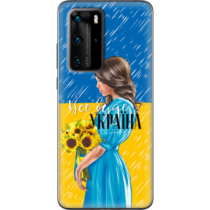 Чехол BoxFace Huawei P40 Pro Україна дівчина з букетом