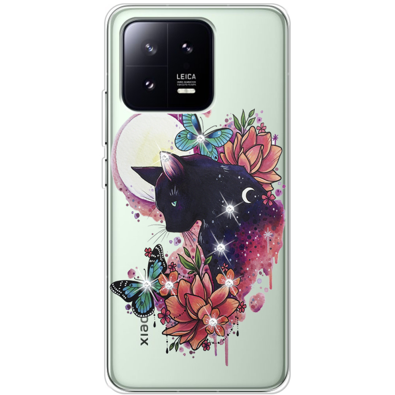 Чехол BoxFace со стразами Xiaomi 13 Cat in Flowers