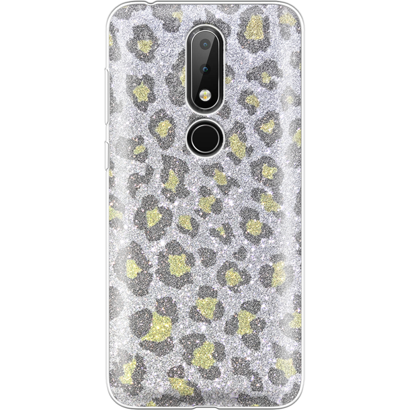 Чехол с блёстками Nokia 6.1 Plus Леопард