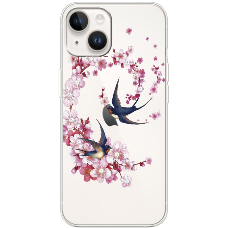 Чехол со стразами Apple iPhone 15 Swallows and Bloom