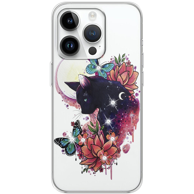 Чехол со стразами Apple iPhone 15 Pro Max Cat in Flowers