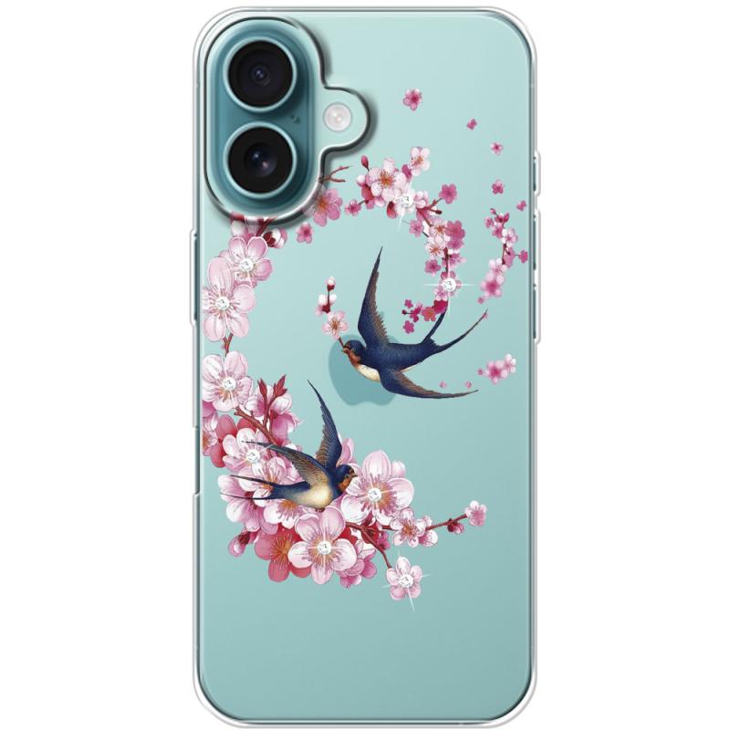 Чехол со стразами Apple iPhone 16 Swallows and Bloom