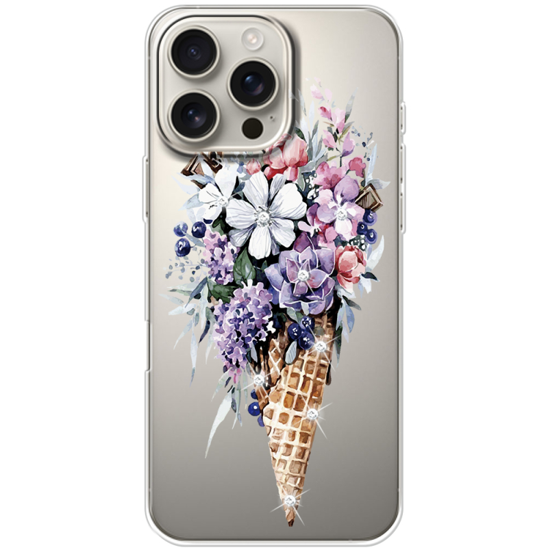 Чехол со стразами Apple iPhone 16 Pro Max Ice Cream Flowers