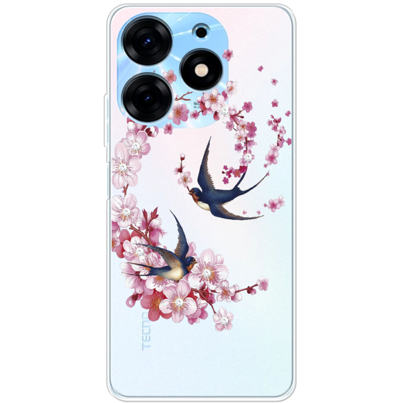 Чехол со стразами BoxFace Tecno Spark 10 Pro Swallows and Bloom