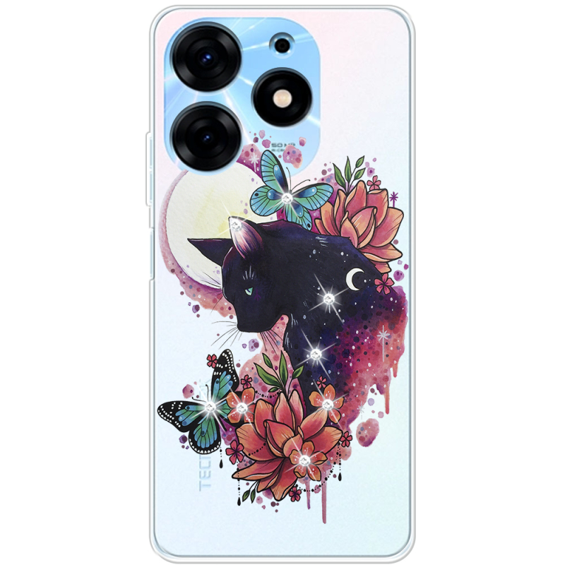 Чехол со стразами BoxFace Tecno Spark 10 Pro Cat in Flowers