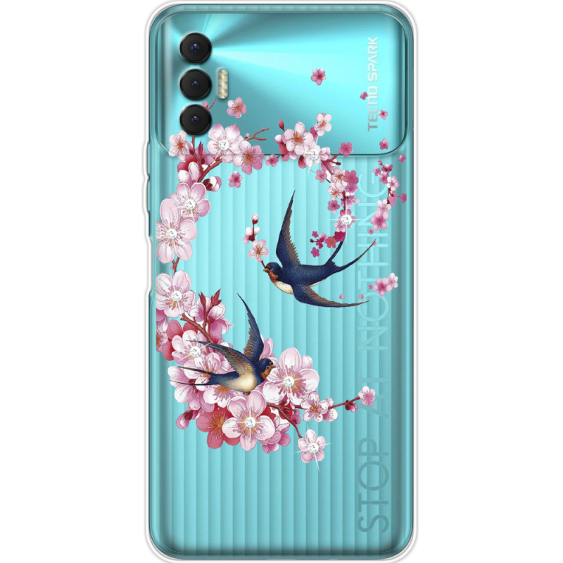 Чехол со стразами BoxFace Tecno Spark 8P Swallows and Bloom