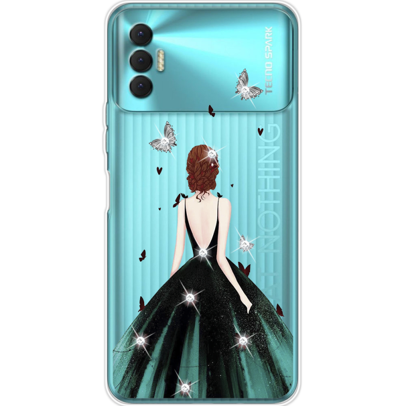 Чехол со стразами BoxFace Tecno Spark 8P Girl in the green dress