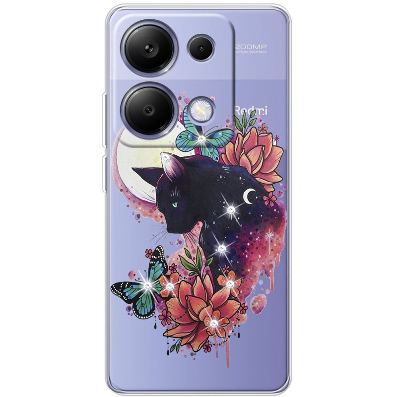 Чехол со стразами BoxFace Xiaomi Redmi Note 13 Pro 4G Cat in Flowers