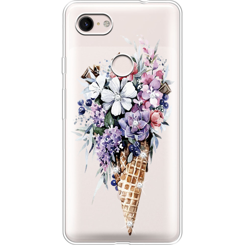 Чехол со стразами Google Pixel 3 XL Ice Cream Flowers