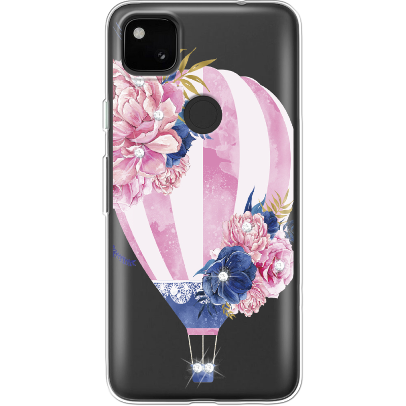 Чехол со стразами Google Pixel 4a Pink Air Baloon