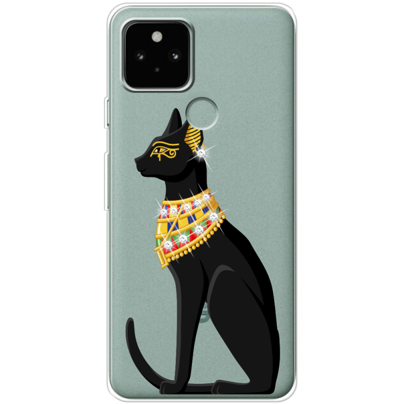 Чехол со стразами Google Pixel 5a Egipet Cat