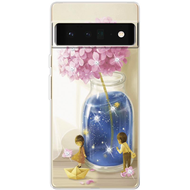 Чехол со стразами Google Pixel 6 Pro Little Boy and Girl