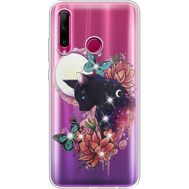 Чехол со стразами Honor 10i Cat in Flowers