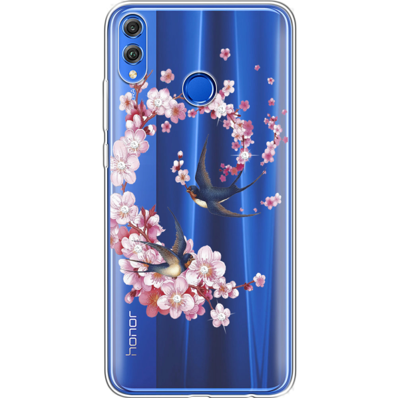 Чехол со стразами Honor 8x Swallows and Bloom