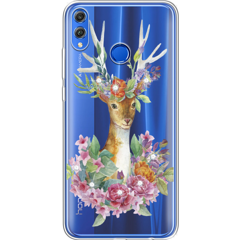 Чехол со стразами Honor 8x Deer with flowers