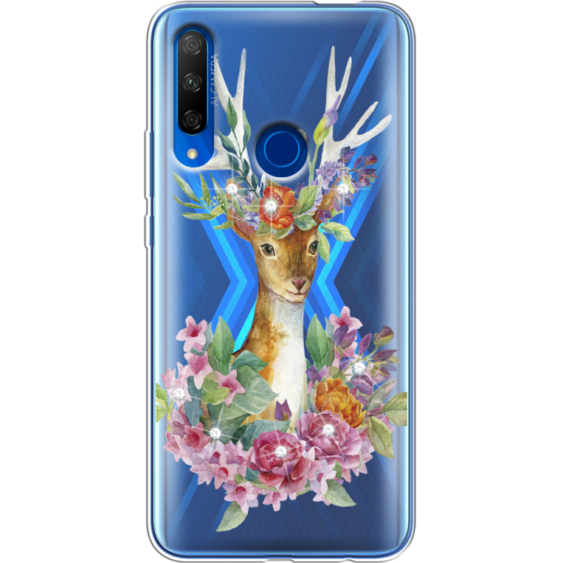 Чехол со стразами Honor 9X Deer with flowers