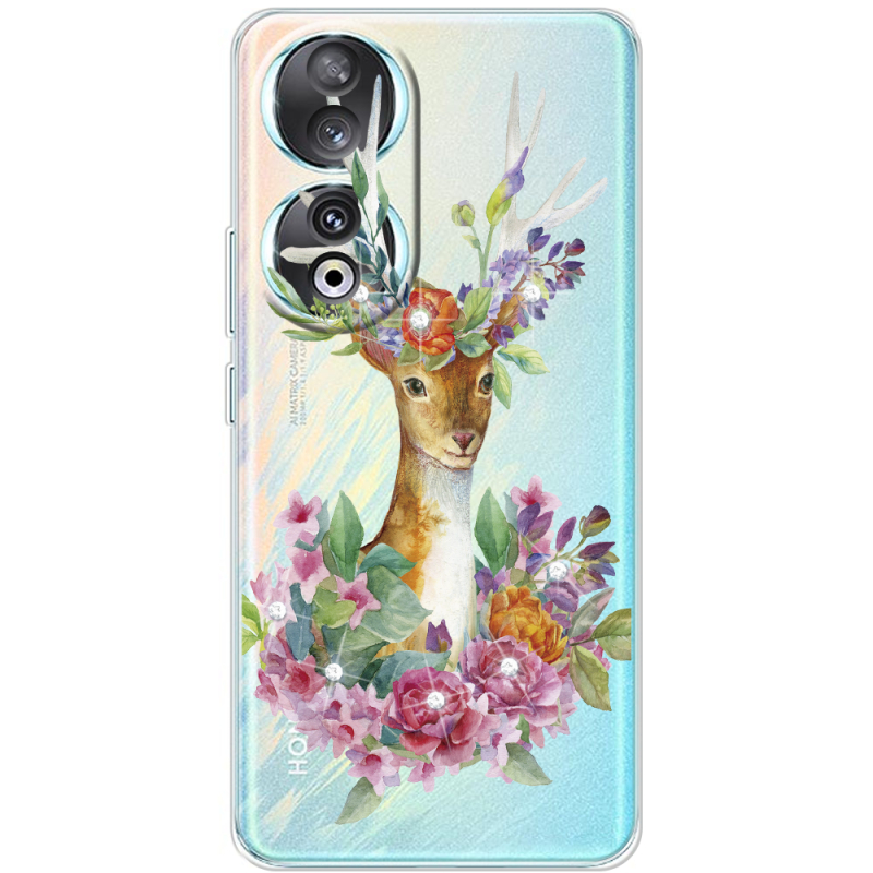 Чехол со стразами Huawei Honor 90 Deer with flowers