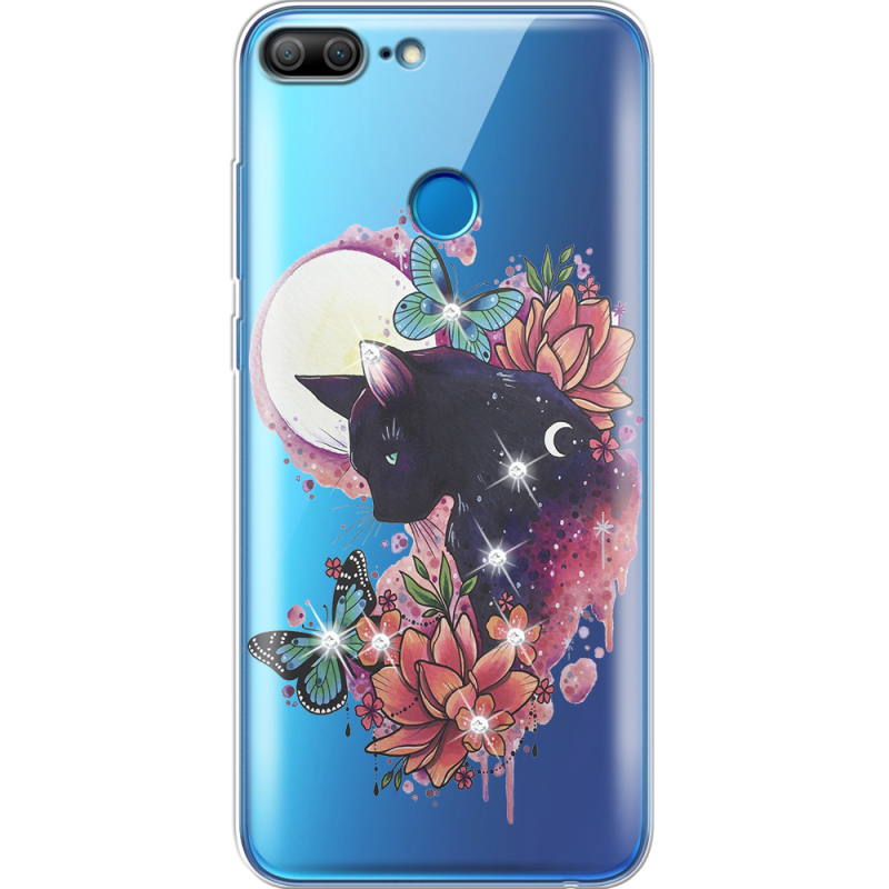 Чехол со стразами Huawei Honor 9 Lite Cat in Flowers