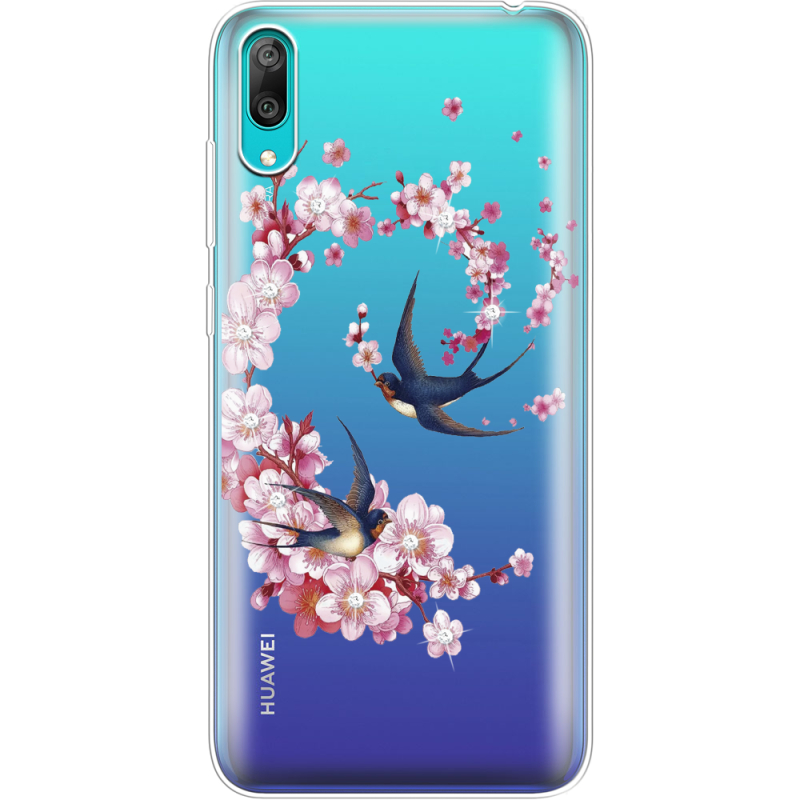 Чехол со стразами Huawei Y7 Pro 2019 Swallows and Bloom