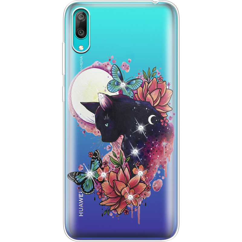 Чехол со стразами Huawei Y7 Pro 2019 Cat in Flowers