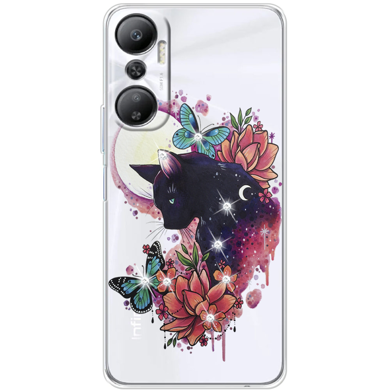 Чехол со стразами Infinix Hot 20 4G Cat in Flowers