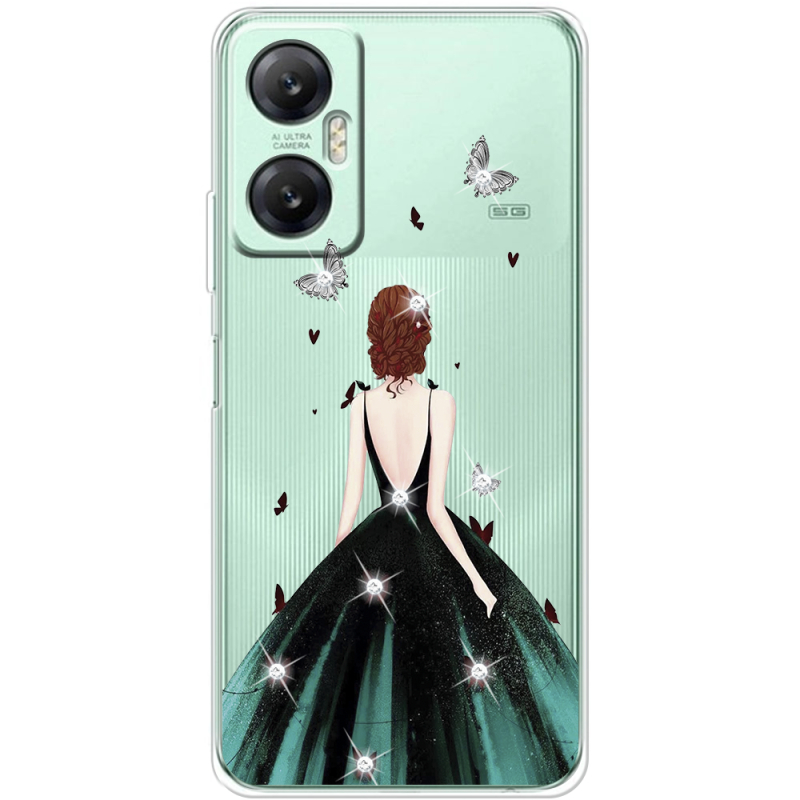 Чехол со стразами Infinix Hot 20 5G Girl in the green dress