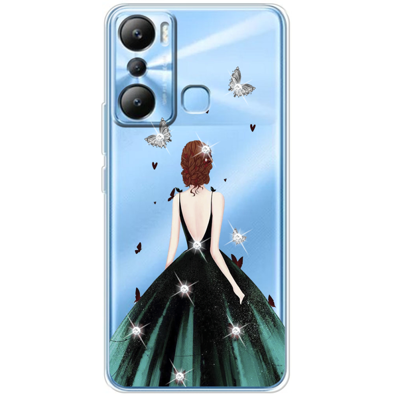 Чехол со стразами Infinix Hot 20i Girl in the green dress