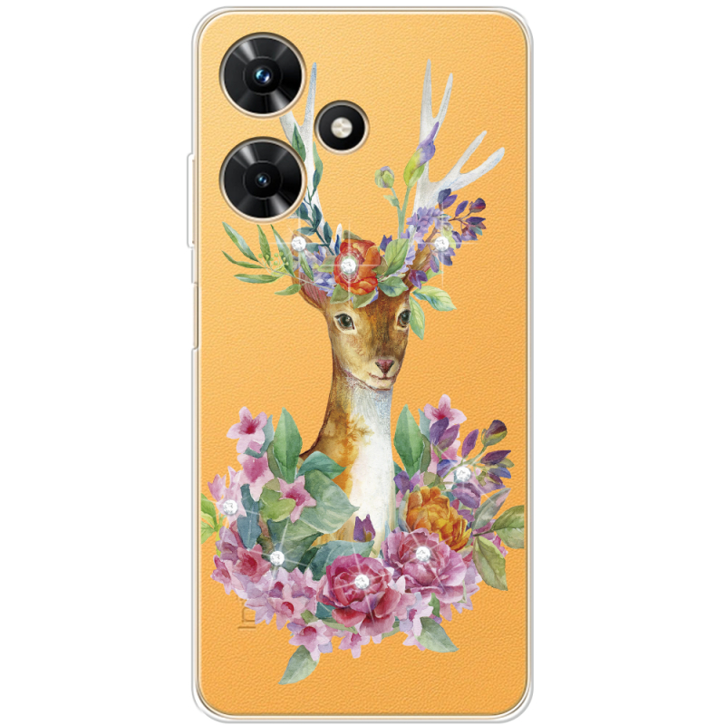 Чехол со стразами Infinix Hot 30i Deer with flowers