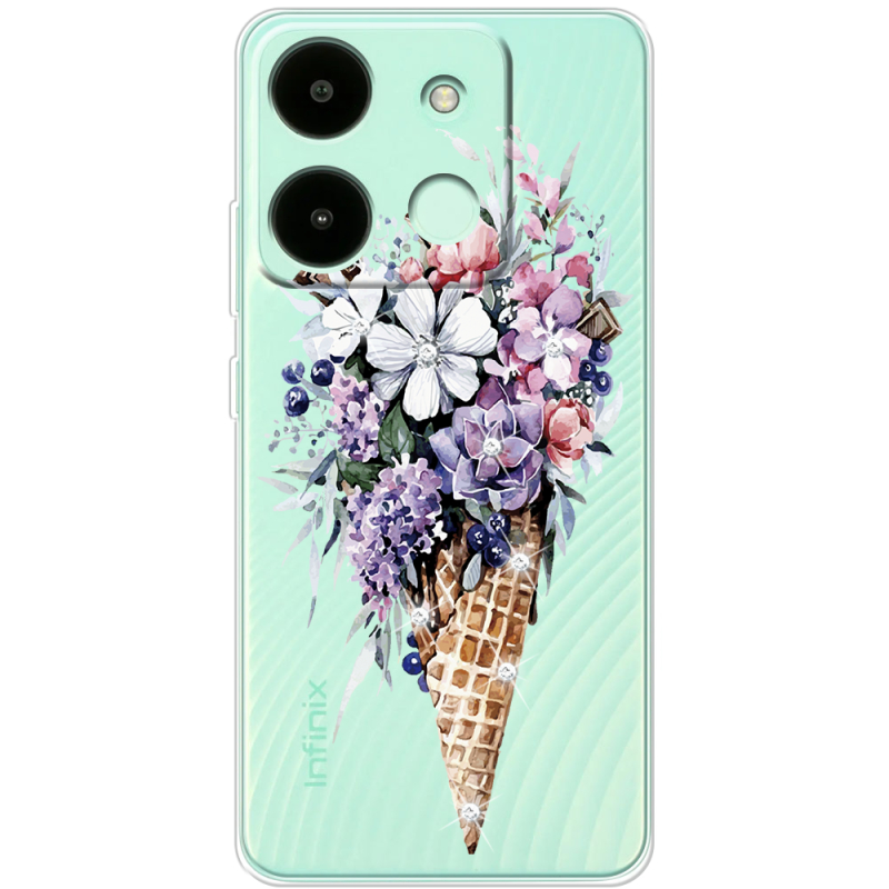 Чехол со стразами Infinix Smart 7 HD Ice Cream Flowers