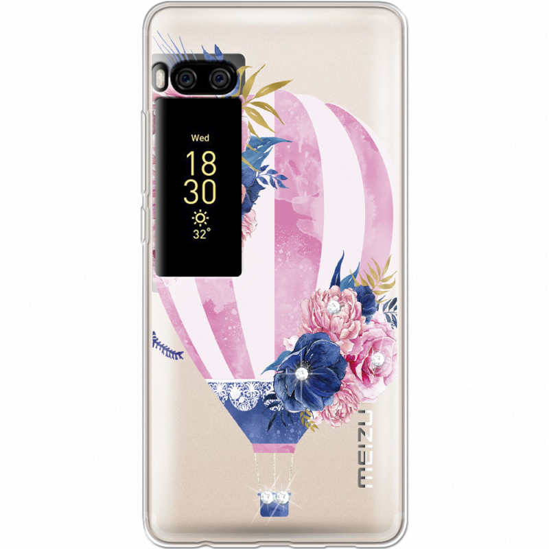 Чехол со стразами Meizu Pro 7 Pink Air Baloon