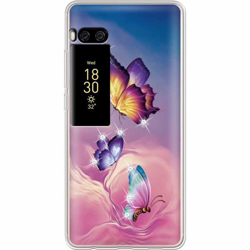 Чехол со стразами Meizu Pro 7 Butterflies