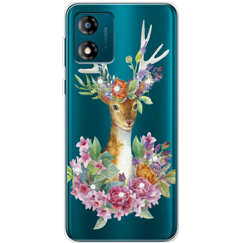 Чехол со стразами Motorola E13 Deer with flowers