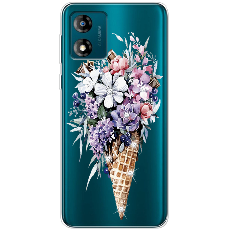 Чехол со стразами Motorola E13 Ice Cream Flowers