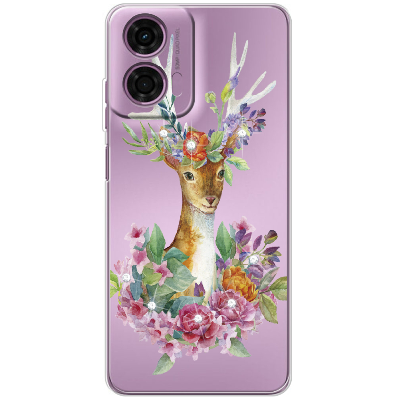 Чехол со стразами Motorola E14 Deer with flowers