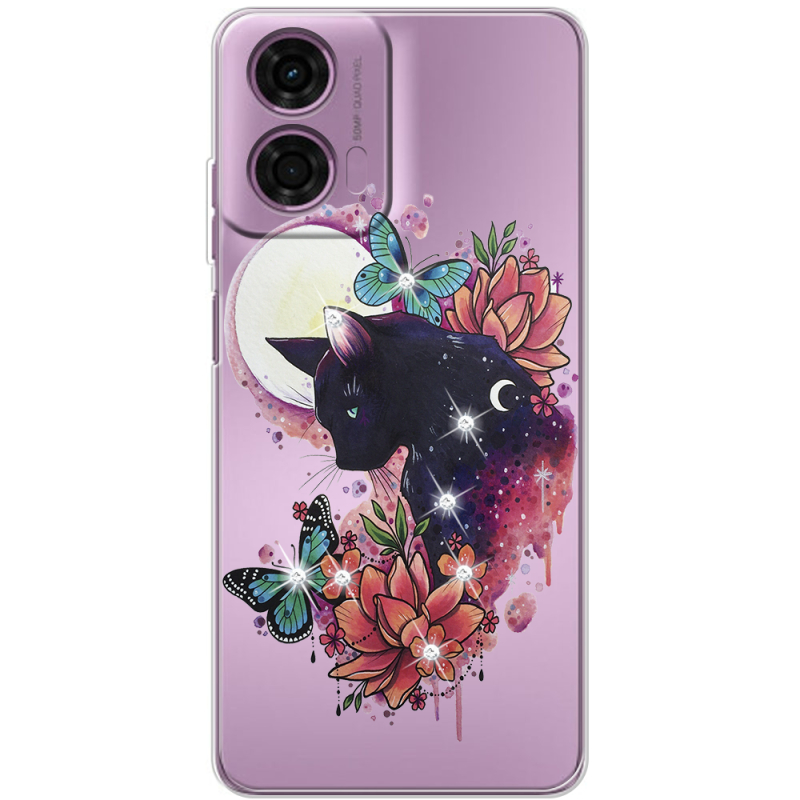 Чехол со стразами Motorola E14 Cat in Flowers