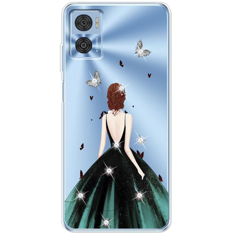 Чехол со стразами Motorola E22/E22i Girl in the green dress