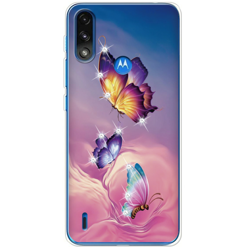 Чехол со стразами Motorola E7 Power Butterflies