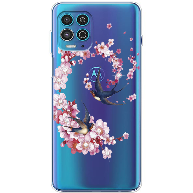 Чехол со стразами Motorola G100 Swallows and Bloom