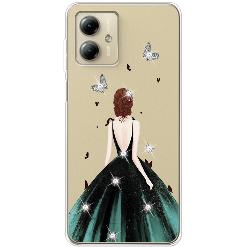 Чехол со стразами Motorola G14 Girl in the green dress