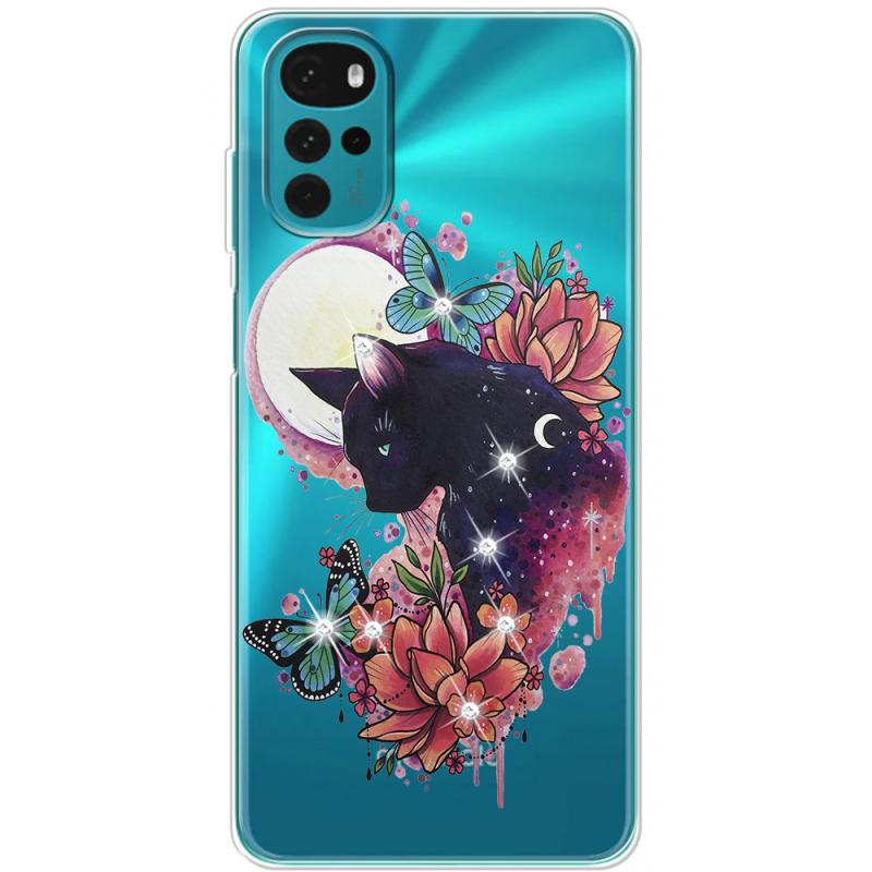 Чехол со стразами Motorola G22 Cat in Flowers