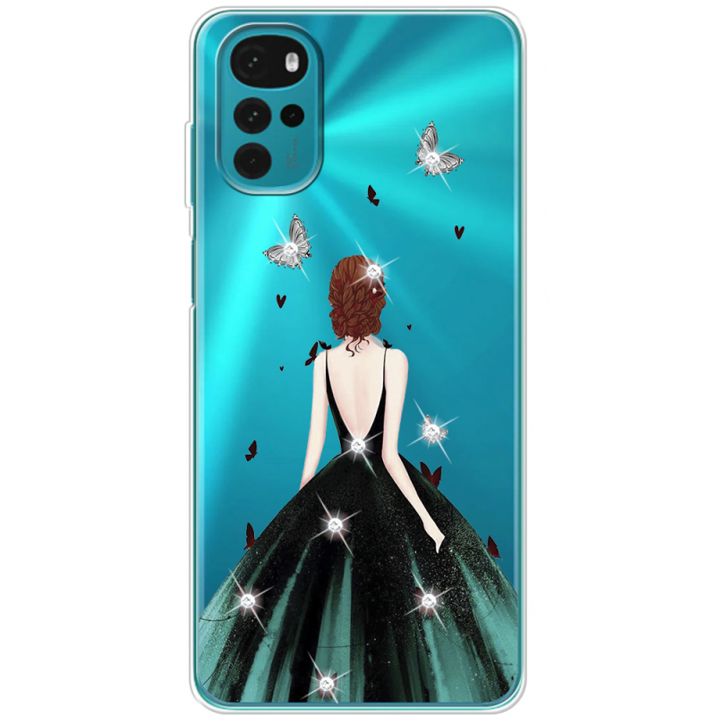 Чехол со стразами Motorola G22 Girl in the green dress