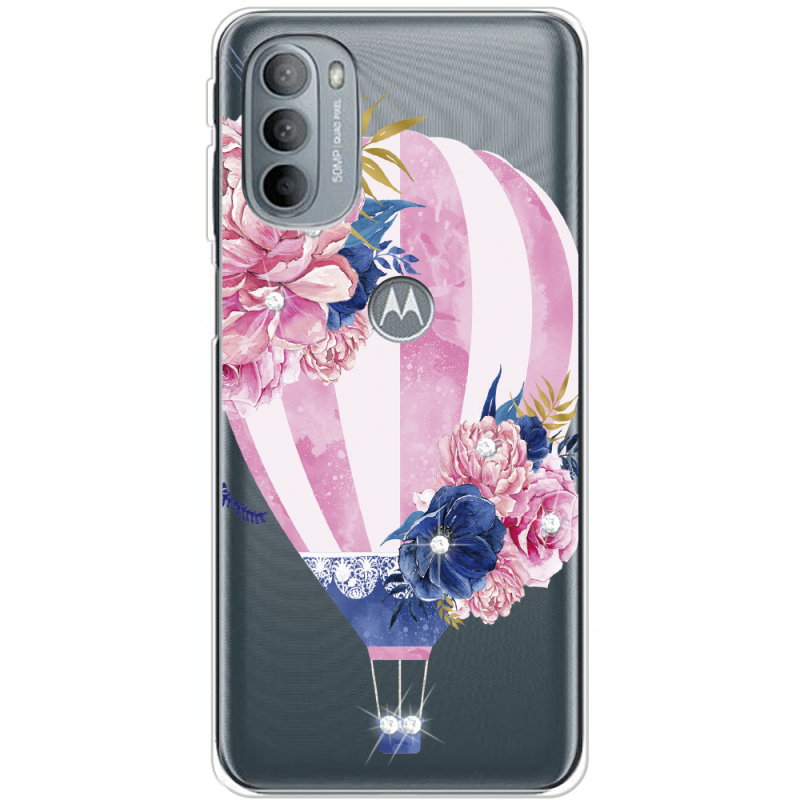 Чехол со стразами Motorola G31 Pink Air Baloon