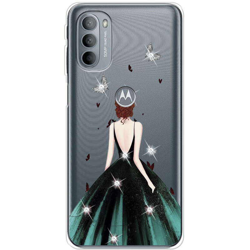 Чехол со стразами Motorola G31 Girl in the green dress