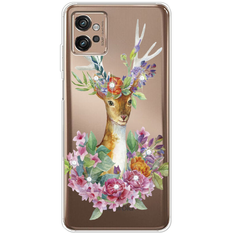 Чехол со стразами Motorola G32 Deer with flowers