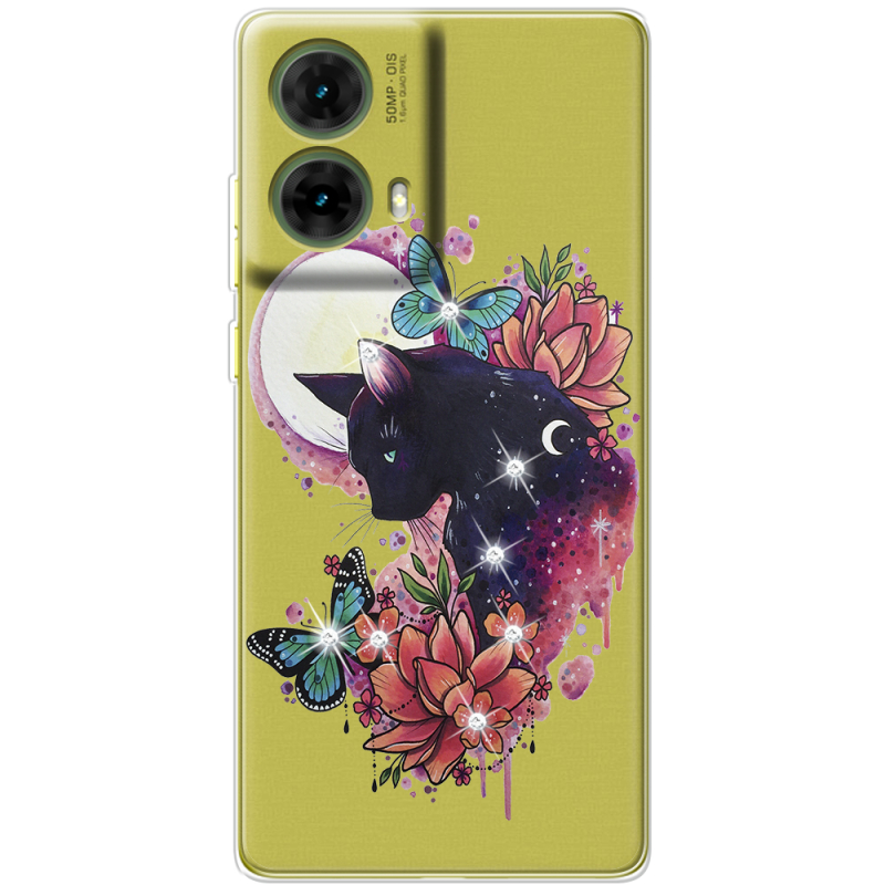 Чехол со стразами Motorola G85 Cat in Flowers