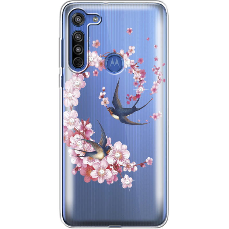 Чехол со стразами Motorola G8 Swallows and Bloom
