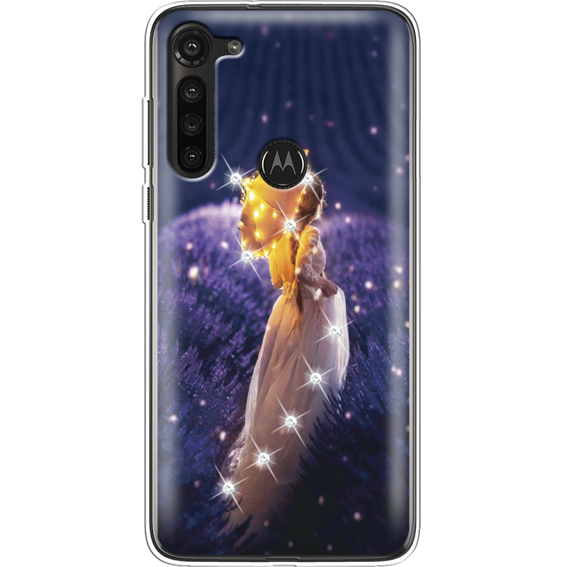 Чехол со стразами Motorola G8 Power Girl with Umbrella