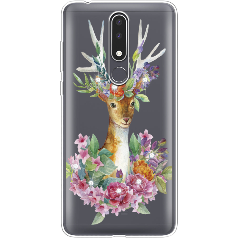 Чехол со стразами Nokia 3.1 Plus Deer with flowers