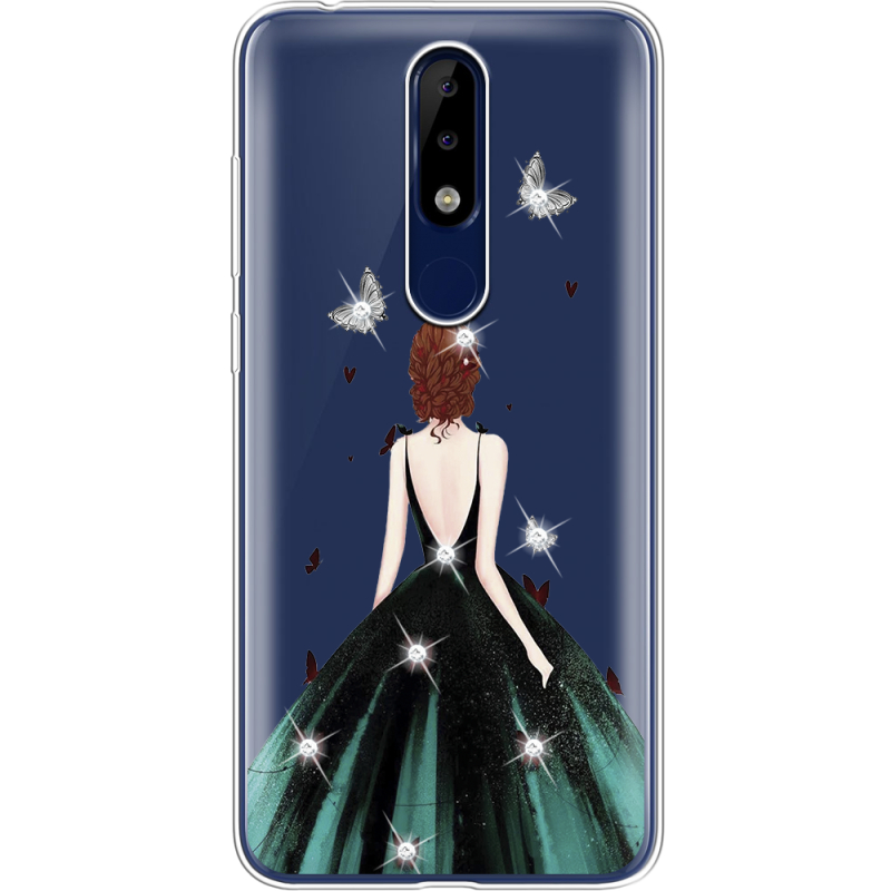 Чехол со стразами Nokia 5.1 Plus Girl in the green dress