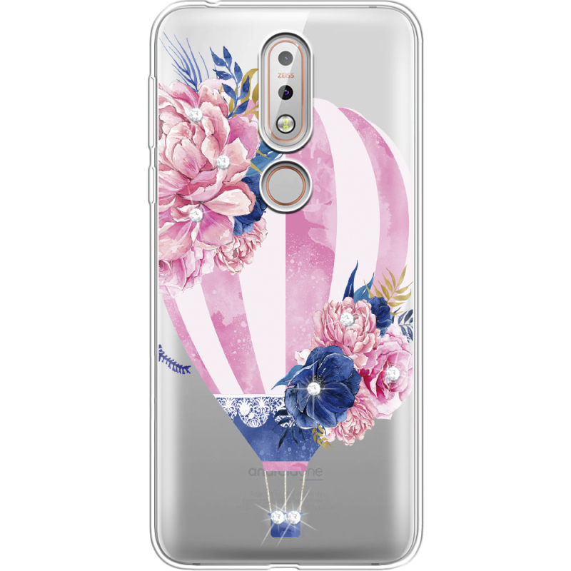 Чехол со стразами Nokia 7.1 Pink Air Baloon